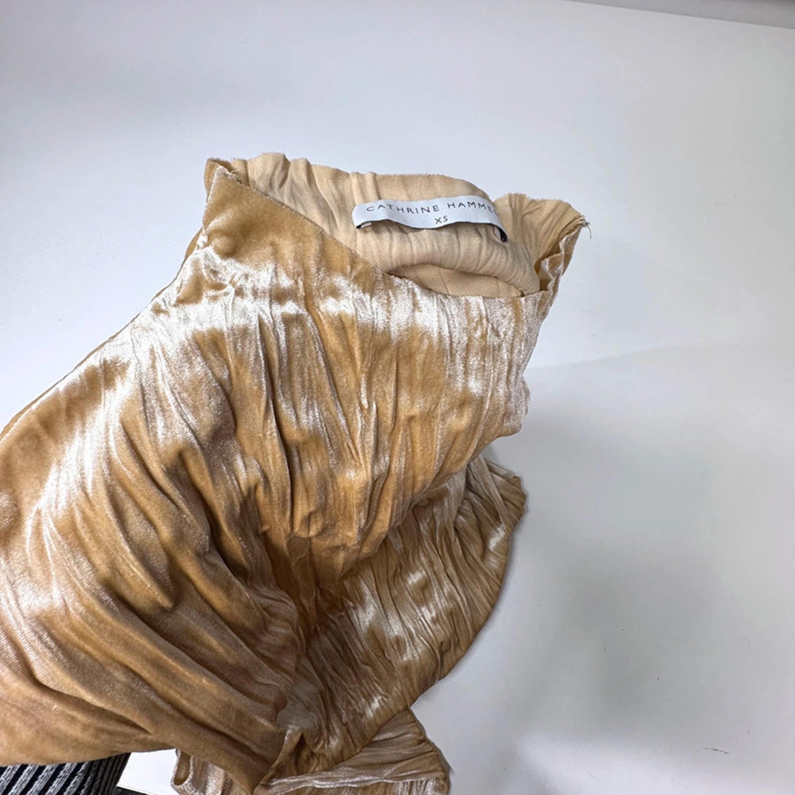 Cathrine Hammel champagne pleated velvet top with short sleeves and mock neck. RRP £150.