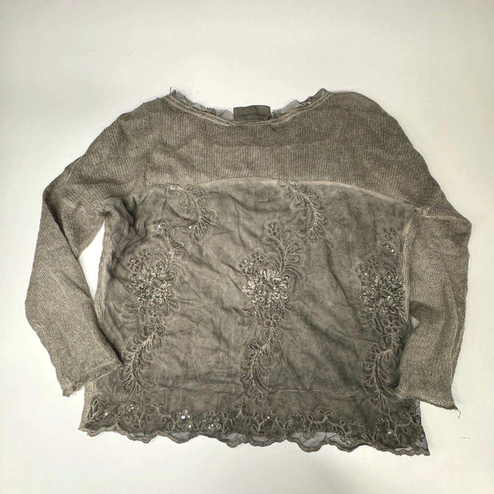 ChillNorway sheer loose knit green sweater with floral embroidery