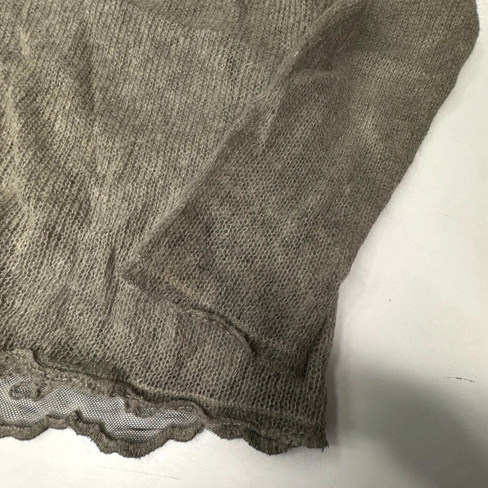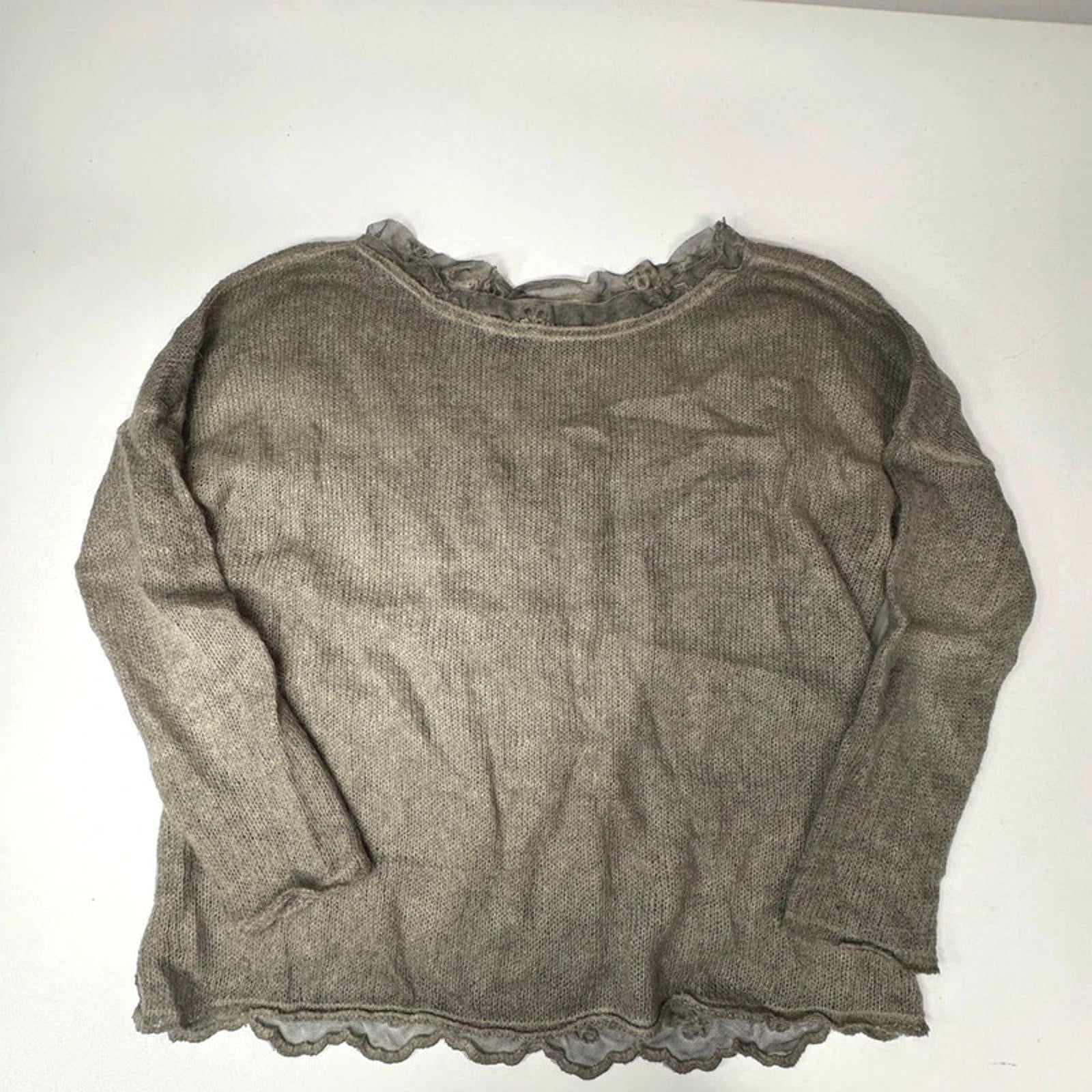ChillNorway summer loose knit green sweater with distressed trim and raw hem. Features a beautiful embroidery on the back. Love the muted green moss / sage colour.