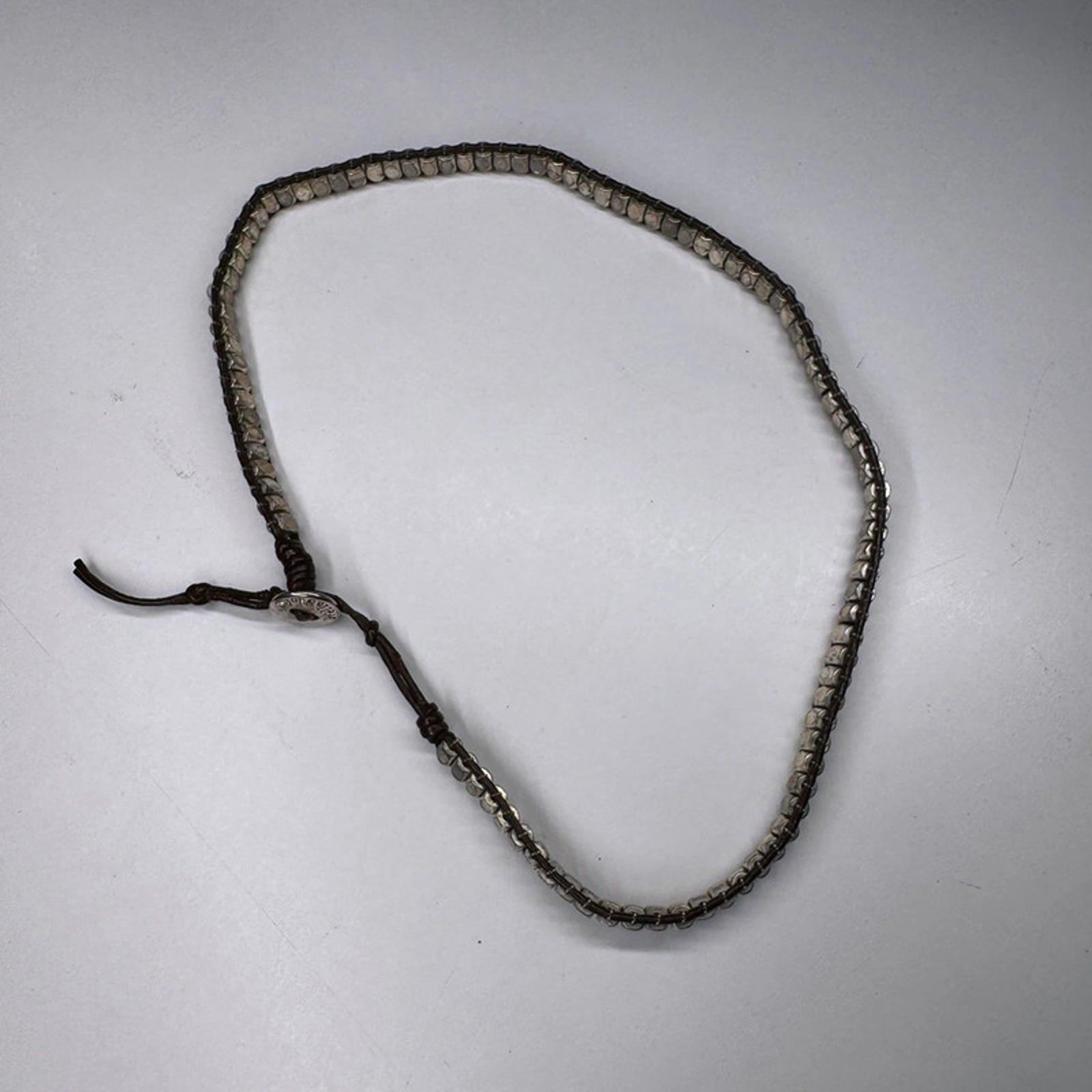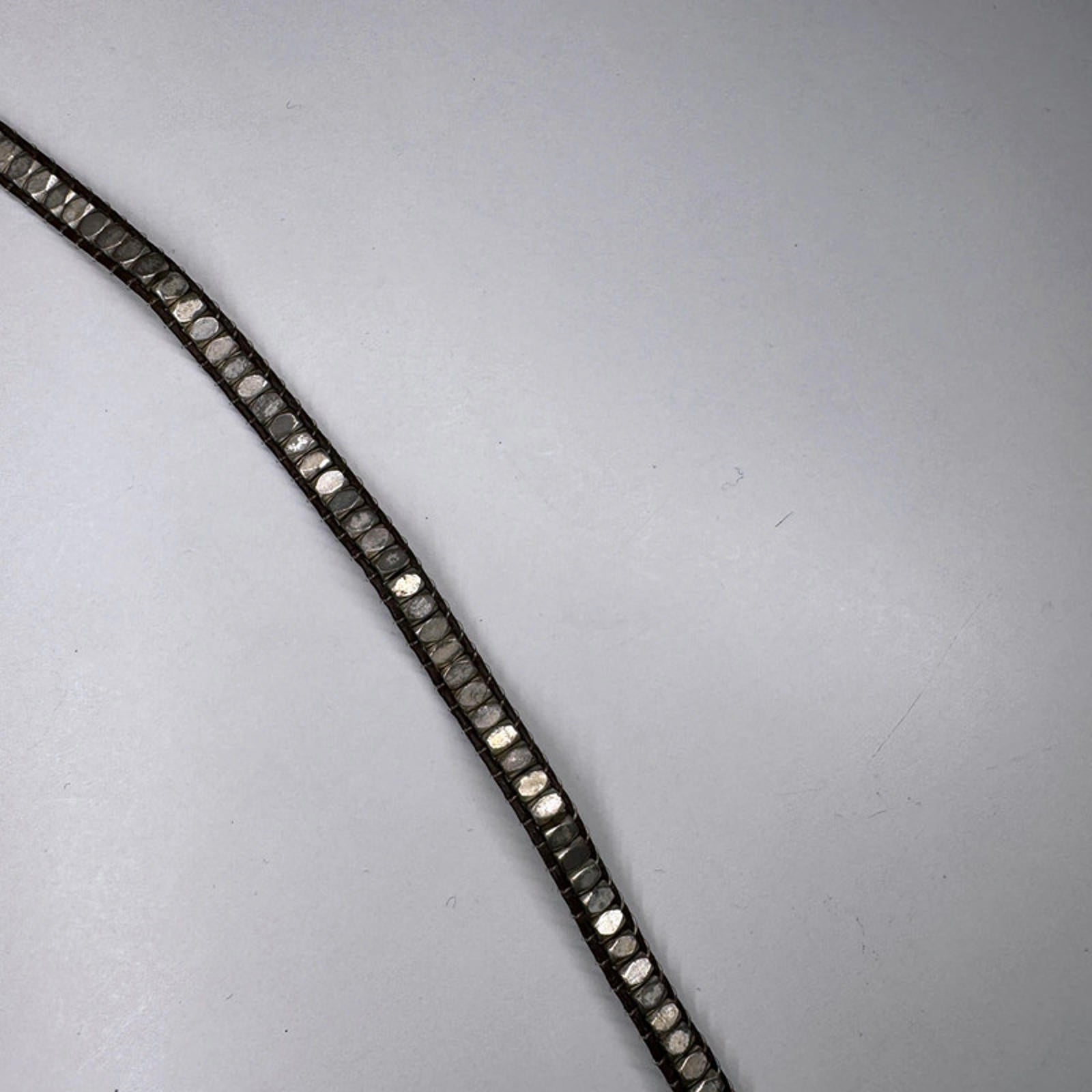 Stella & Dot choker (or wrap bracelet) with metallic faceted beads on dark leather cord.