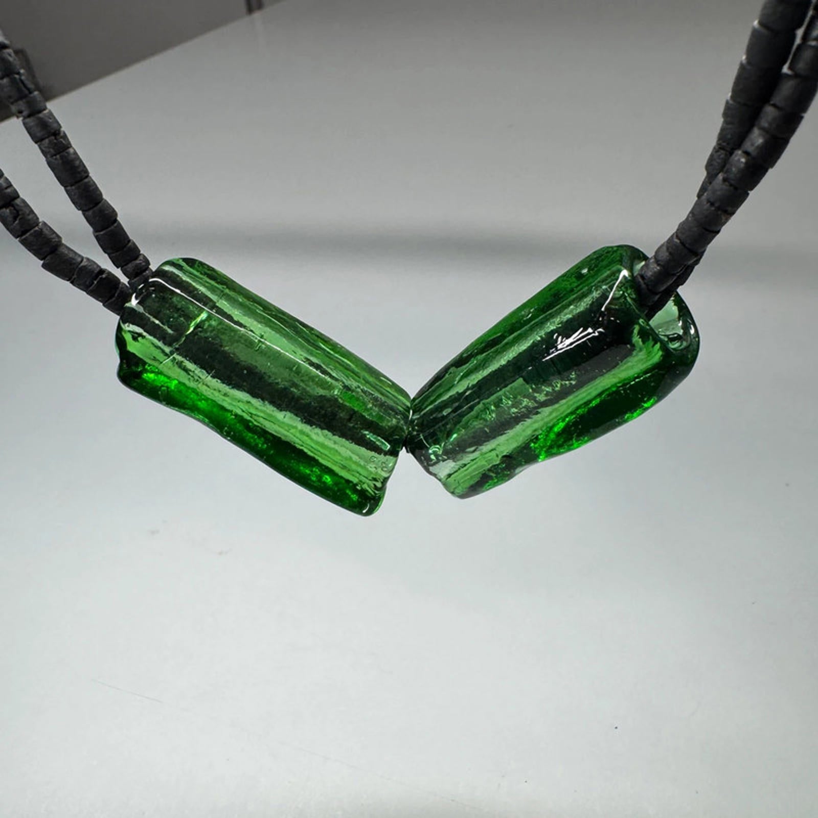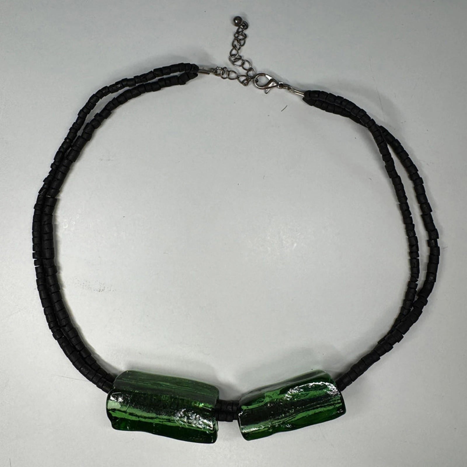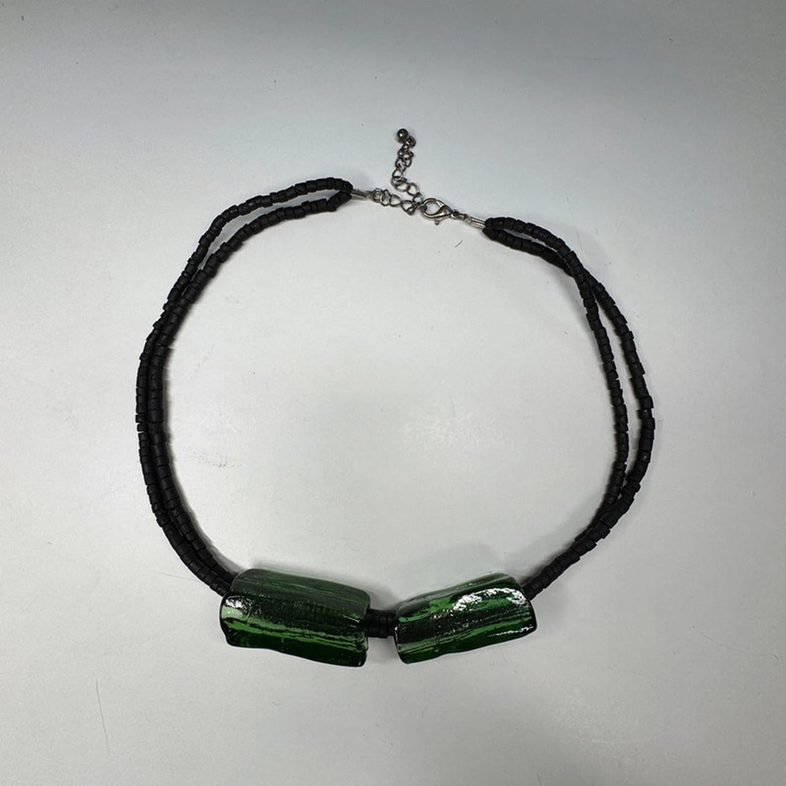 Vintage black and green glass necklace