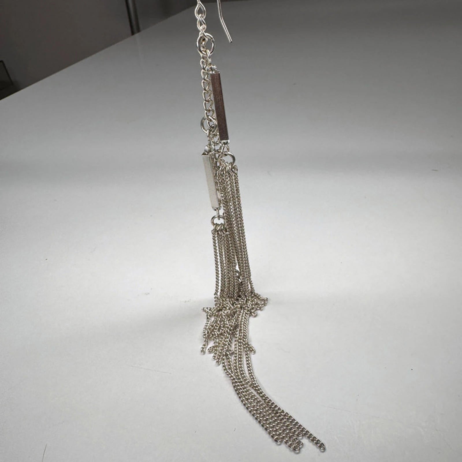 Vintage long silver-tone chain earrings with sleek bar accents.