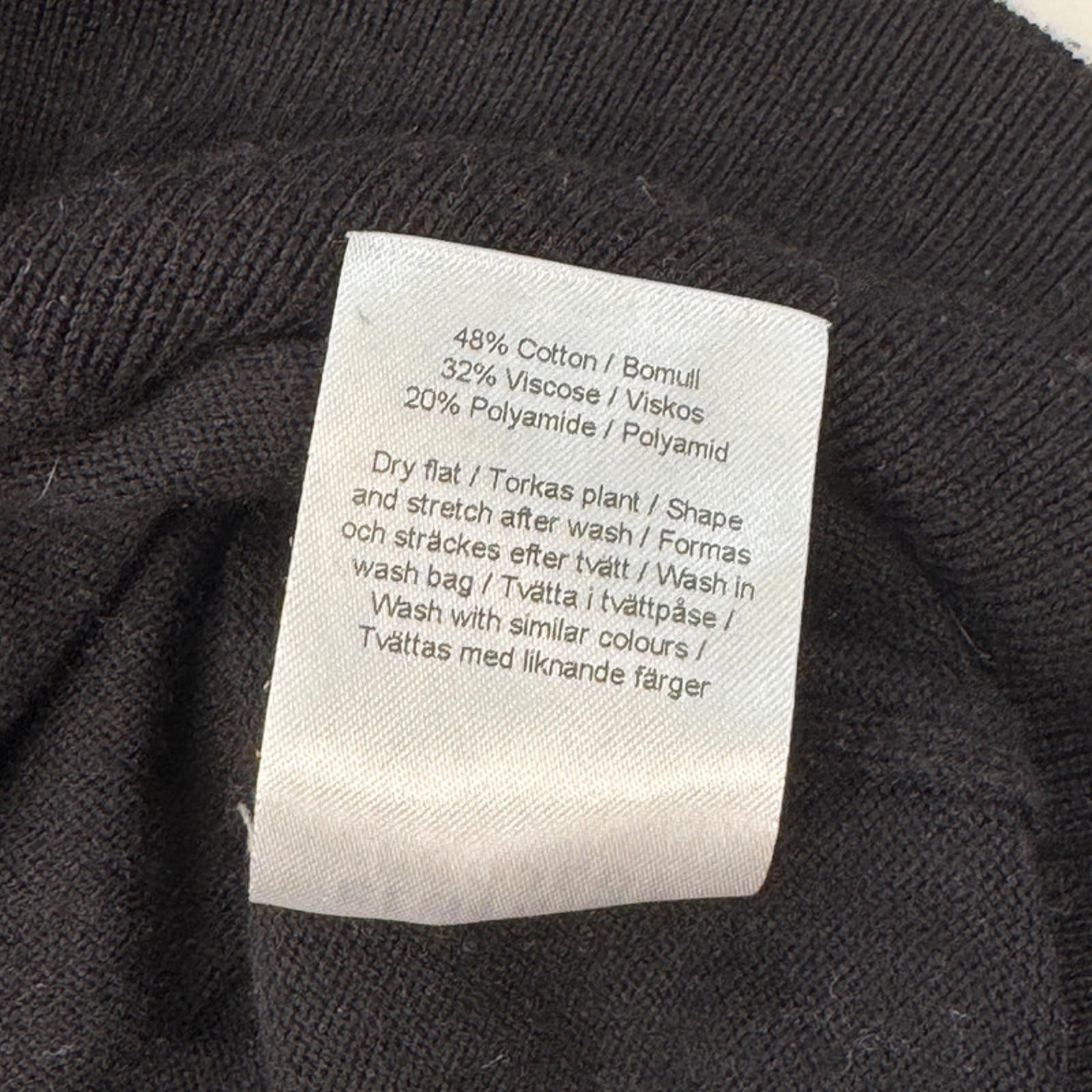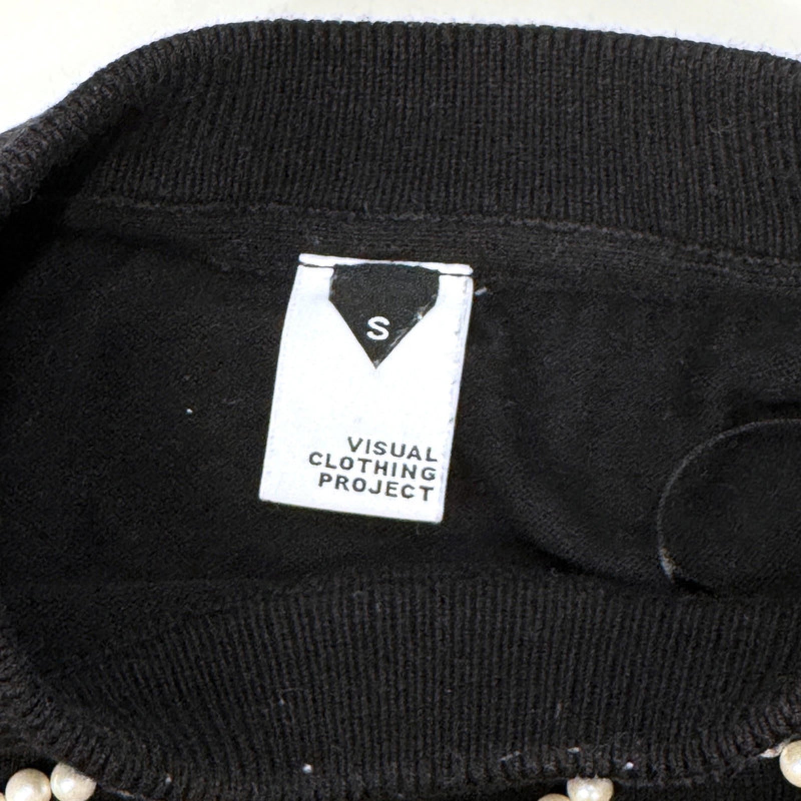 Visual Clothing Project black pearl embroidered jumper. Handwash is better, but can machine wash if in proper laundry bag and inside out.